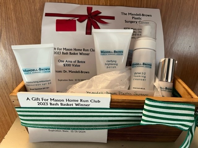 Winning bidder will receive a basket full of skin care goodies from the Mandell-Brown Plastic Surgery Center. Basket includes: 1 area of Botox 1 Diamond Glow Facial 1 Clarifying Brightening Polish 1 Glysal Cleanser 1 Moisturizing Suncreen SPF 50 1 Triple Antioxident Cream [Pick up in Mason, OH 45040]