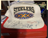 Coach Mike Tomlin and TJ Watts autographed Super Bowl XXX hat, with additional team autographs
