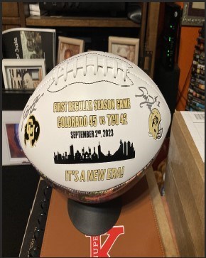 The Inaugural season-opening game against TCU, ushering in the Deon Sanders Era at the University of Colorado autographed by Coach Deion "Prime Time" Sanders and his son Colorado QB Shedeur Sanders