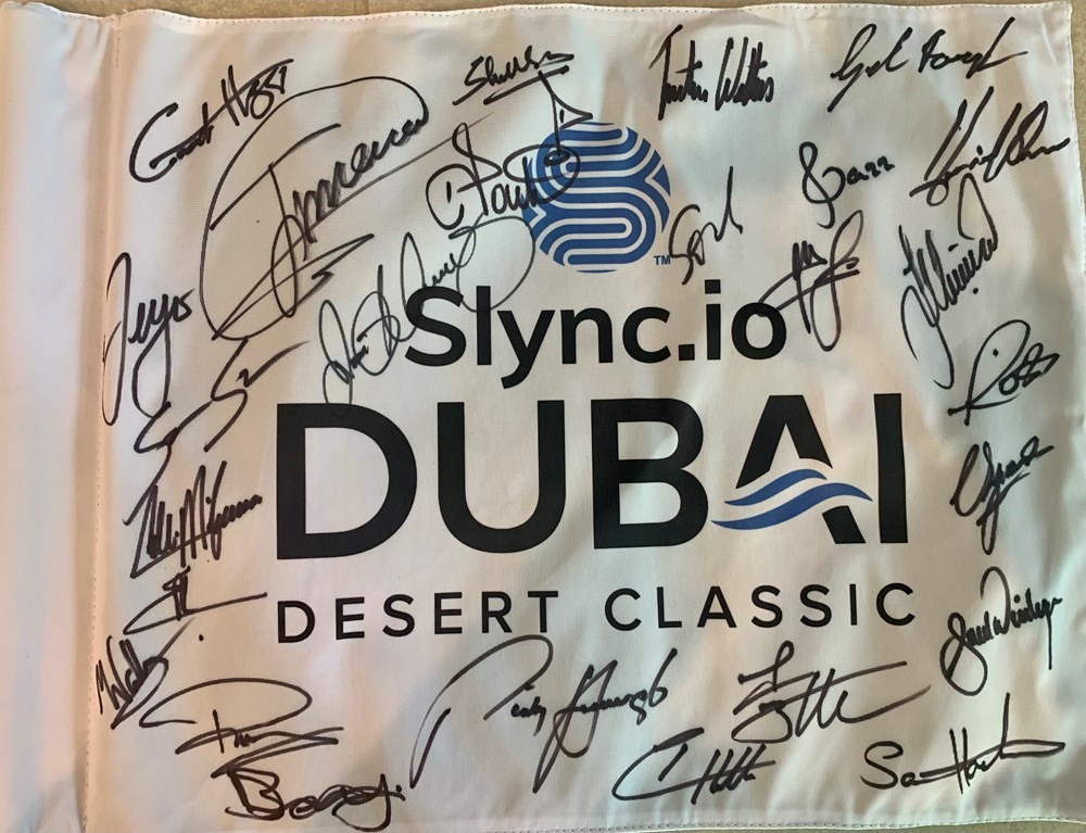 Golf Flag signed by European Tour pros playing in the 2022 Dubai Desert Classic